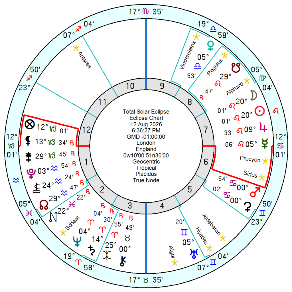 The 28 August 2026 Lunar Eclipse at 4 degrees Pisces/Virgo has the Full Moon square Uranus so will bring surprises and an effort to break the old mould in various situations.
