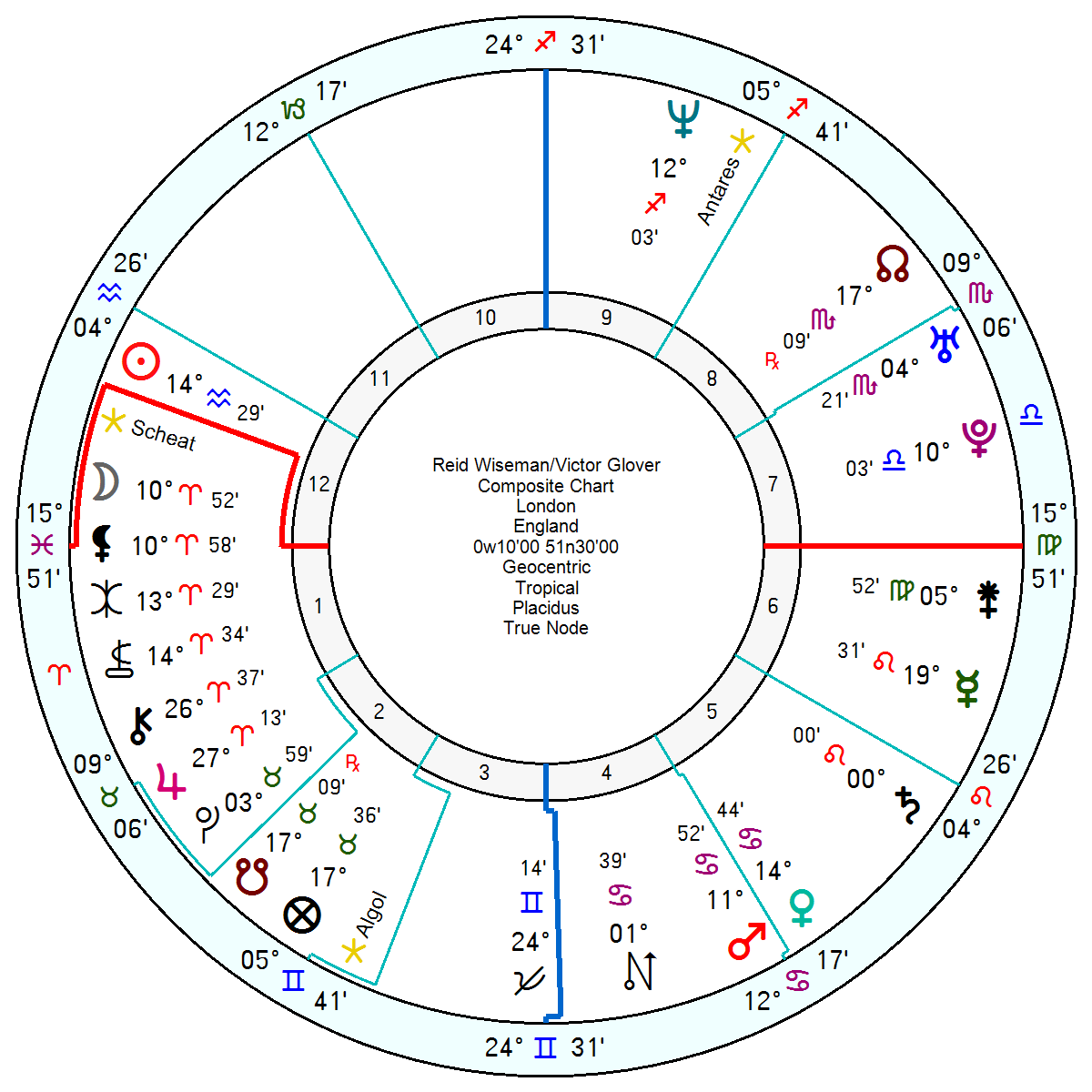 Weisman/Glover – Pluto square Mars Venus; and a yod of Neptune sextile Sun inconjunct Mars Venus.