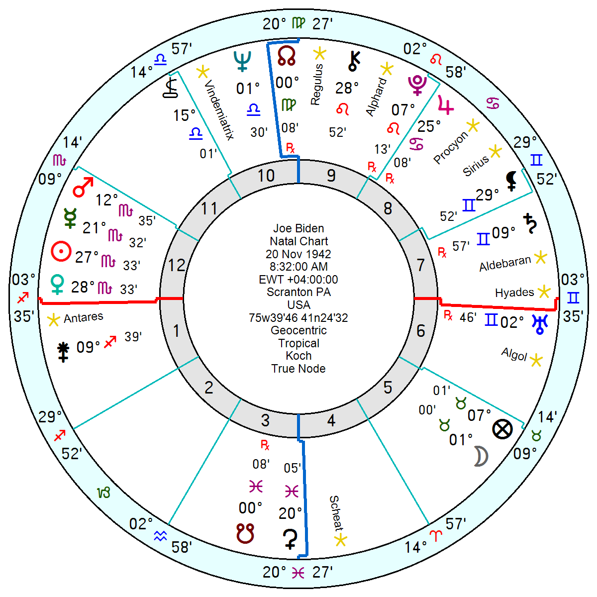 Biden’s obstinacy – Sun, Venus, Mercury and Mars in Scorpio; Mars square Pluto in Leo; and a Taurus Moon – did him no favours and the USA even less.