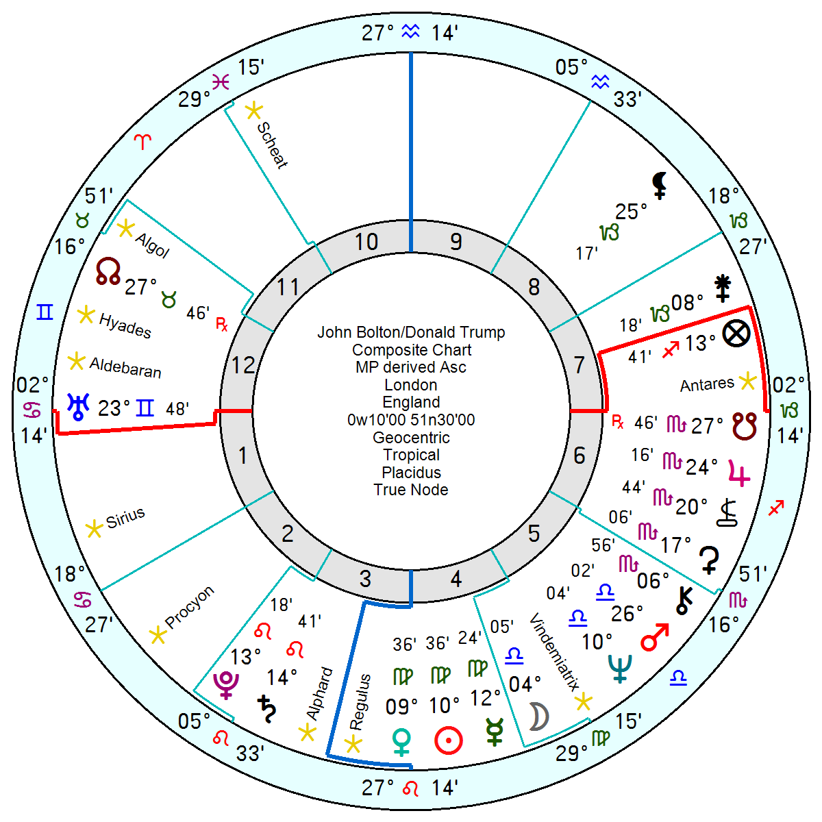 His relationship chart with Trump (minus Bolton’s birth time) is chained together and resenting it. But with nothing much showing now bar tr Uranus opposition the composite North Node which is conjunct Algol, hinting at aggravation out on the public scene.