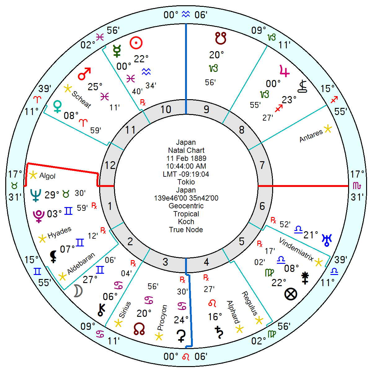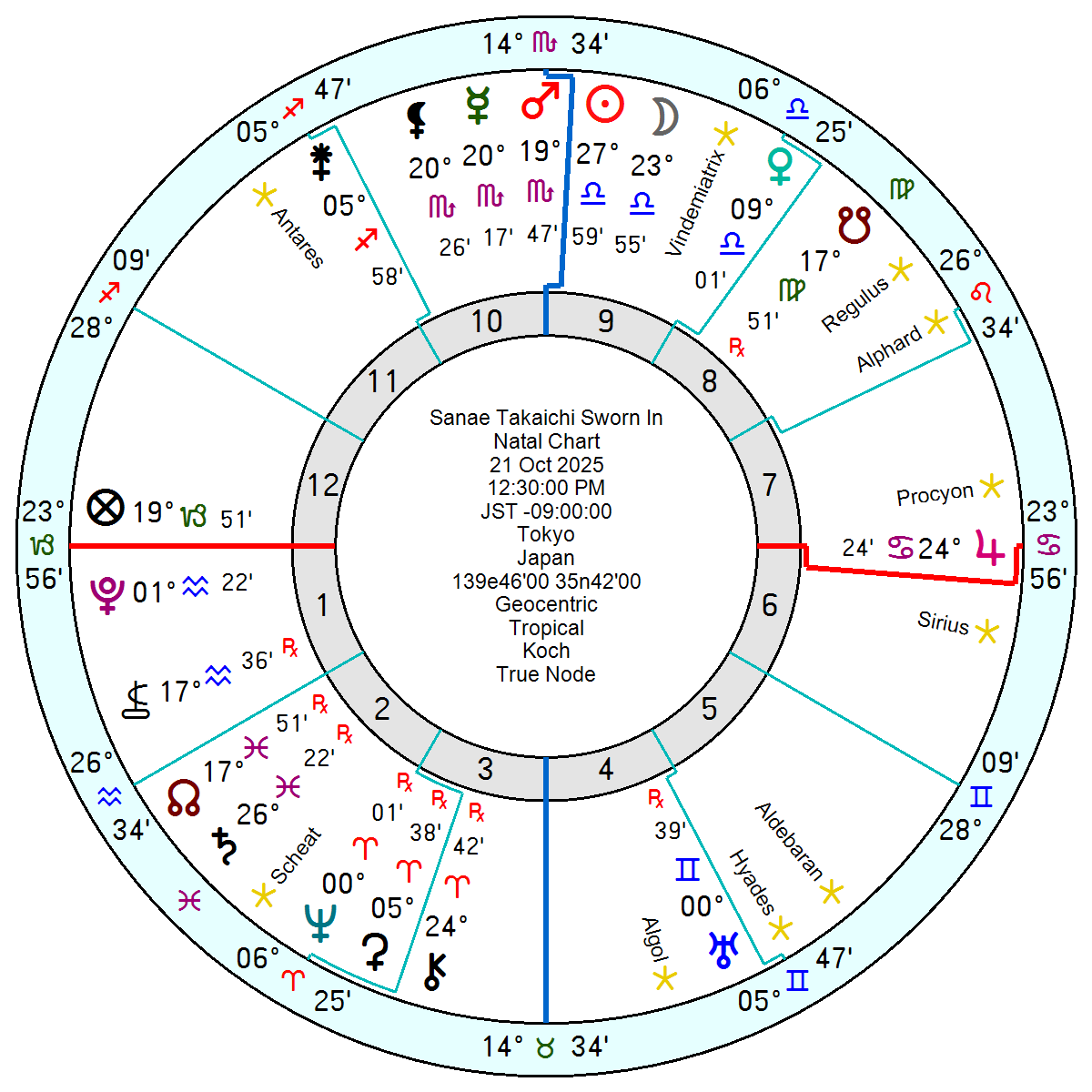 Japan, 11 February 1889 10.44am Tokyo, Japan, has its Solar Arc Venus opposition the Sun which hints it may not regard a women PM unfavourably though her Uranus also opposition the Japanese Sun does point to what a revolution it is in terms of the country’s culture. Her relationship chart with Japan does indicate a high energy chemistry so she clearly means business. The Japan chart across this winter and through 2026 into 2027 has tr Uranus conjunct the Neptune in Taurus and Pluto in early Gemini so it is clearly facing a period of radical change.