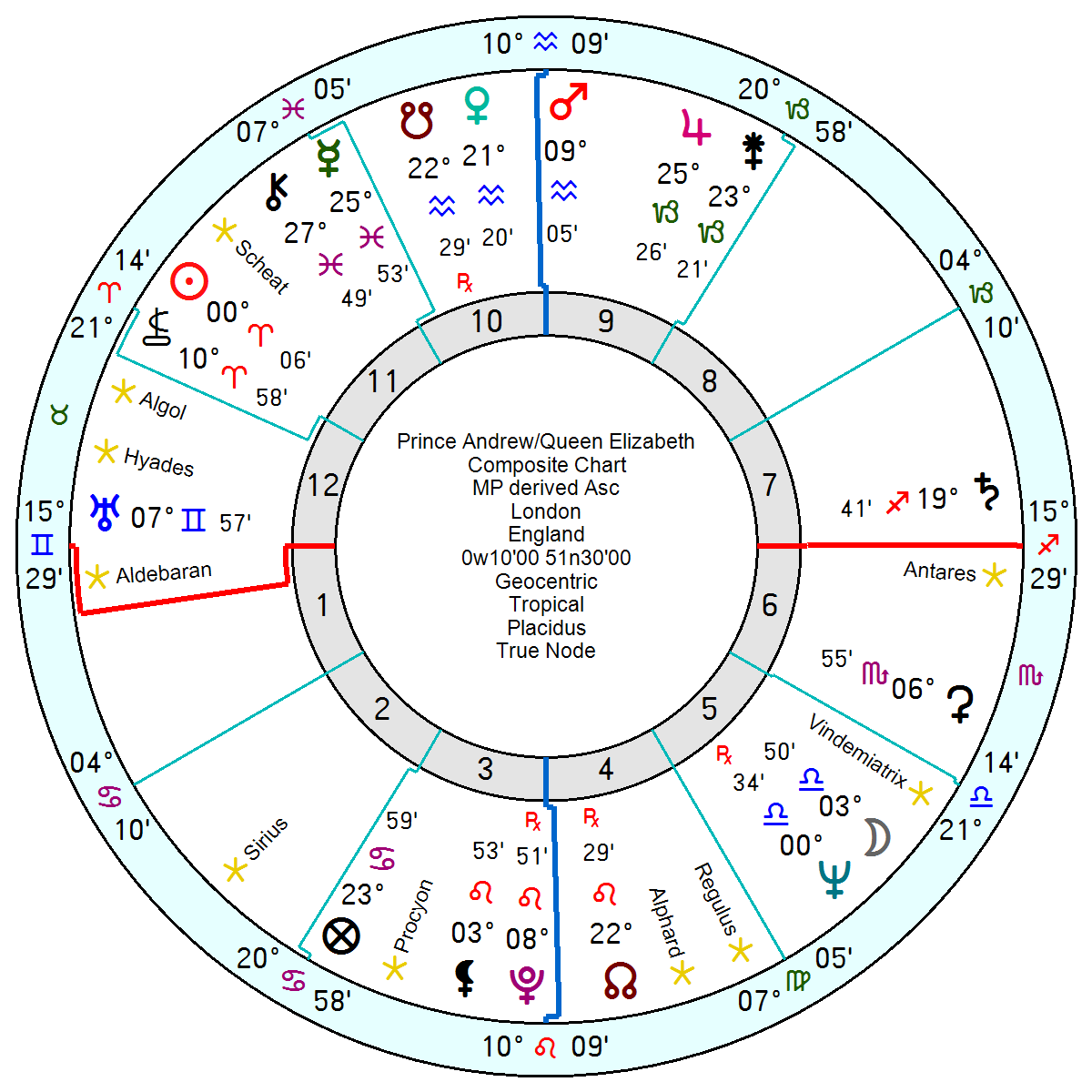 One of the mysteries of Queen Elizabeth 11’s reign was her forgiving attitude towards Andrew as her supposed favourite son. His reckless Uranus was conjunct her forgiving and unrealistic 7th house Neptune in Leo. And their relationship chart could not have been more Neptunian with a composite Sun opposition Moon Neptune. She sacrificed her life for the monarchy with her one blind spot being Andrew – he was her Achilles’ Heel. Neptune, the dream weaver, reality seen through a soft focus lens – an idealized image which avoided the truth. Andrew’s natal Uranus was also hooked into their composite Venus opposition North Node – her affection at odds with the needs of the culture.