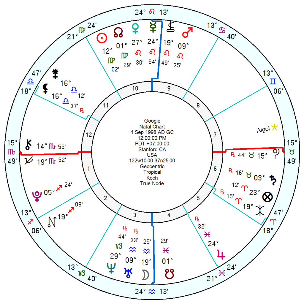 Google, owner of Youtube, 4 September 1998, was facing an upset from the recent Aquarius Solar Eclipse opposing its Venus with Solar Arc Neptune approaching the opposition to its financial Venus as well within months. It will feel the cold winds of hardship and deprivation from tr Pluto square its Saturn, especially August to December this year; as well as a major upheaval from August on and off into 2027 from tr Uranus opposition its Pluto.