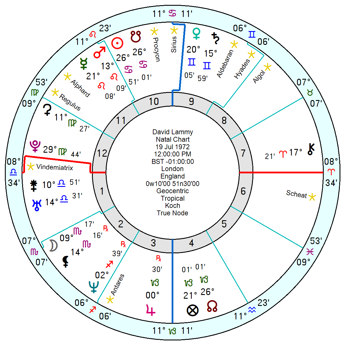 Lammy, 19 July 1972, London, is a late Sun Cancer with a Scorpio Moon and a flashy and outspoken Mercury Mars in Leo.