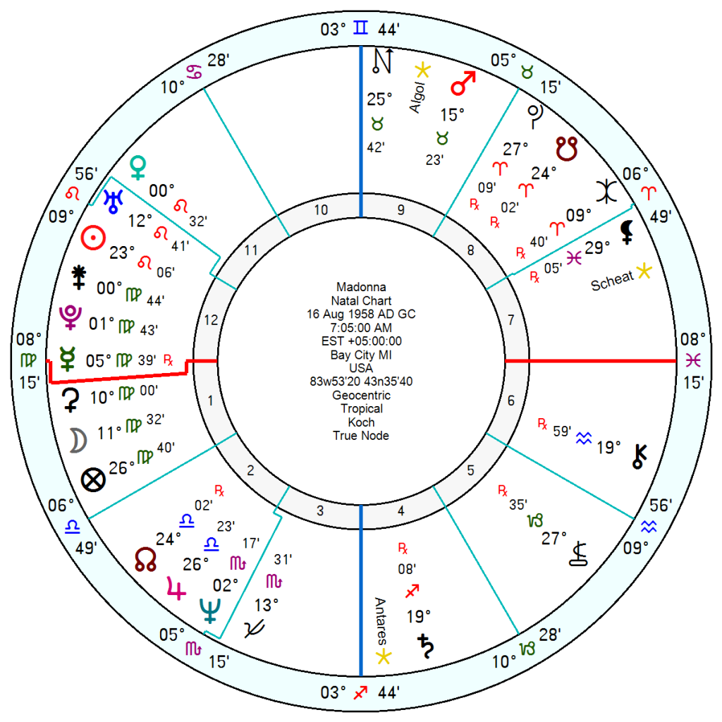 Michael Jackson, 29 August 1958 7.33pm Gary, Indiana, had an over-controlled Sun Pluto conjunction in Virgo, a hint of a dominating father. Though if this birth time is sound then Saturn on his Midheaven square a Pisces Moon and Ascendant, and inconjunct Mars hardly describes a warm and nurturing mother.