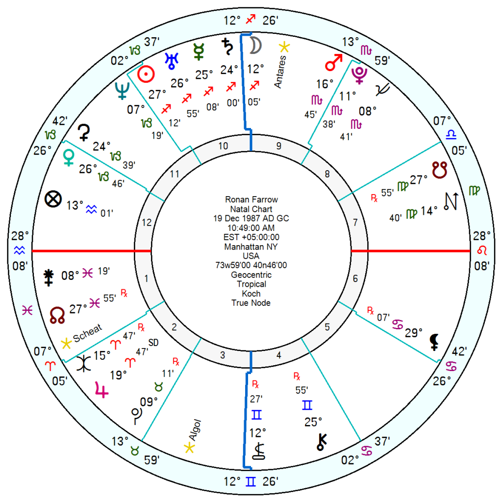 Karp, 2 October 1967 New York, has a Libra Sun opposition Saturn in Aries with the innovative Uranus Pluto (Moon) conjunction in Virgo square Mars – again super-determined and ruthless. Plus a flamboyant Jupiter in Leo in a high-finance, over-optimistic square to Neptune. The ground will turn swampy under his feet from 2028 onwards with tr Neptune conjunct his Saturn and opposition his Sun with a devastating/confused 2029 as his SA Pluto is conjunct his Neptune.