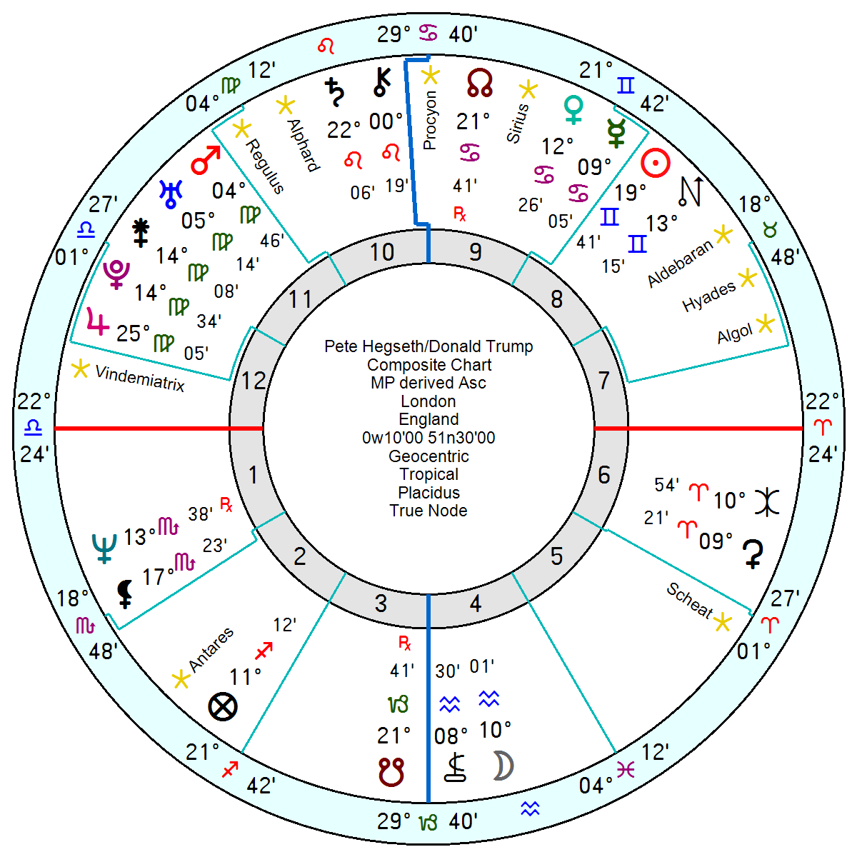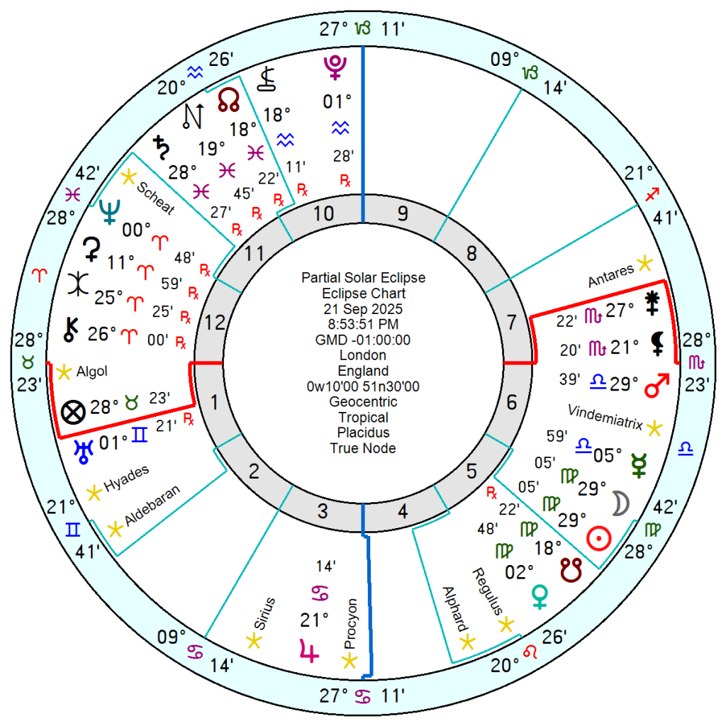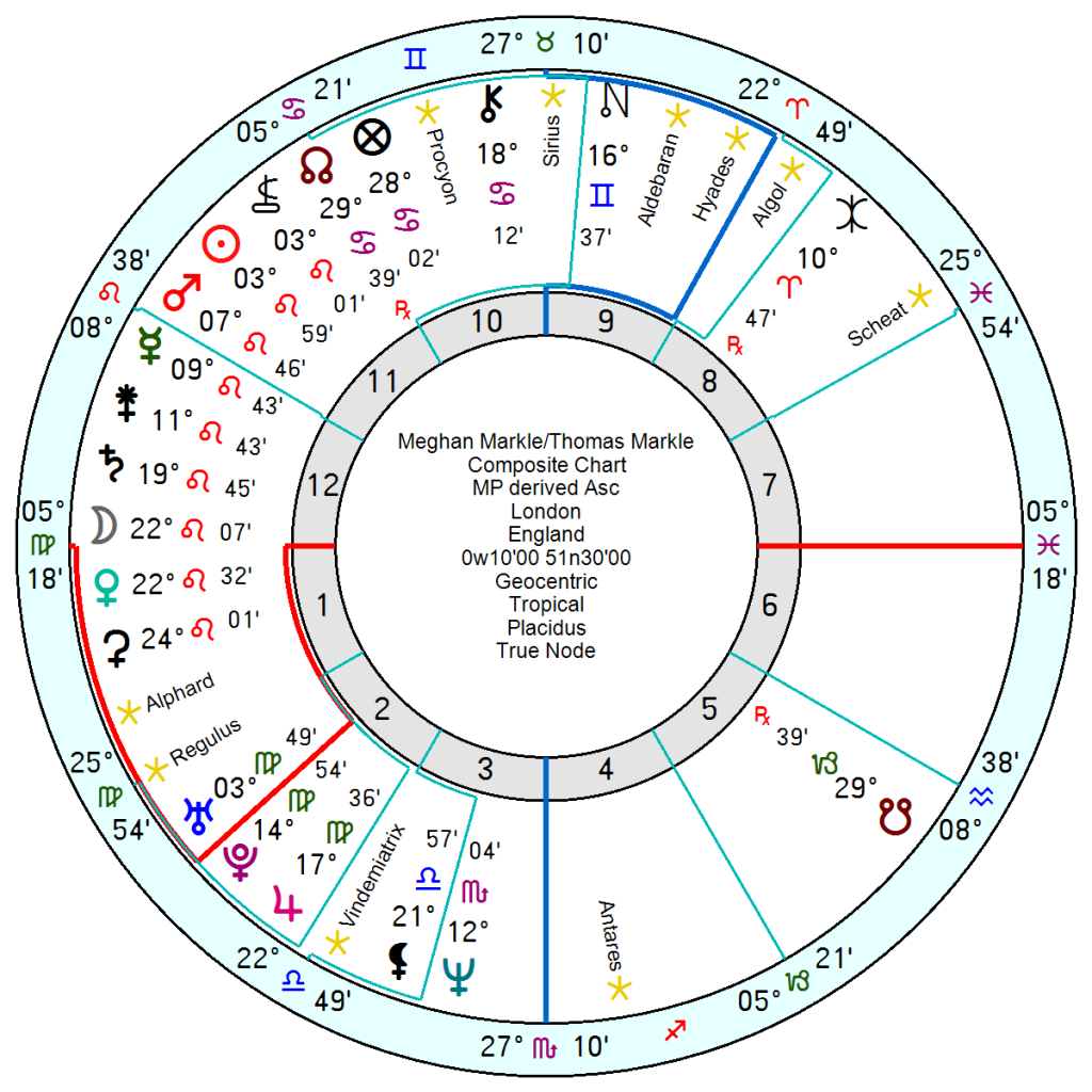 But what is eye-catching is the MI5 Mars in Pisces which is exactly conjunct Chariklo (= eternal suffering), Nessus (= lies and manipulation) and conjunct Eris, planet of discord, disruption and provocation as well as the unfortunate Scheat. All of which seem fitting. It is a formidable chart.