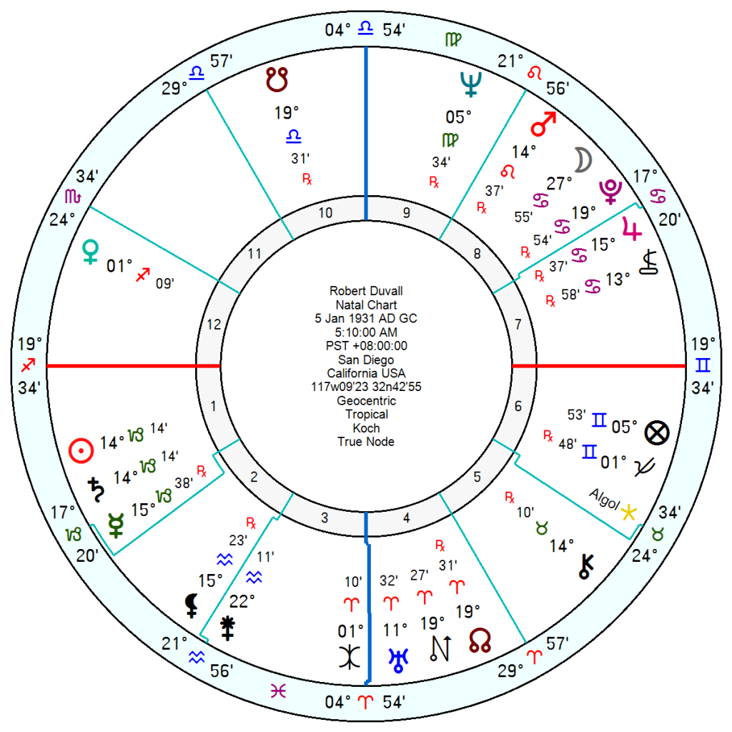 His Pluto was in the 8th house, which is not uncommon amongst top film stars who are able to project a powerful image. His Moon and Mars in Leo were also in the 8th so he did have subterranean depths which he put to good use in his highly controlled performances.