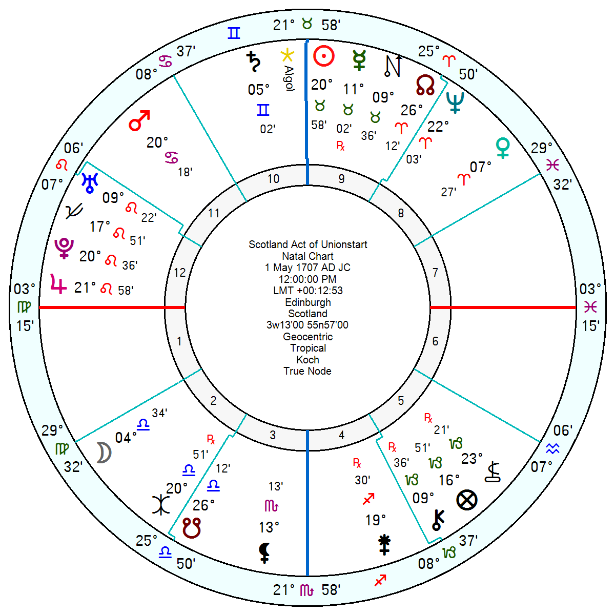 What is intriguing is the Scotland Act of Union chart with England, 1 May 1707, which has a Jupiter Pluto in Leo conjunction square a Taurus Sun which will be highlighted by the coming August solar eclipse. Interesting to see what if anything transpires. That chart looks unsettled, uncertain and discouraged this year and for the next two.