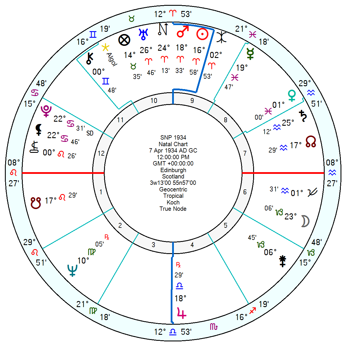 The SNP, 7 April 1934, was determined and vociferous during the years of tr Uranus in Aries square Pluto in Capricorn from 2011 onwards – since it ramped up the SNP’s pugnacious Sun Mars in Aries opposition Jupiter square Pluto. When that moved on in recent years and the financial ramifications of a split from the UK became clearer the heat went out of the fight.
