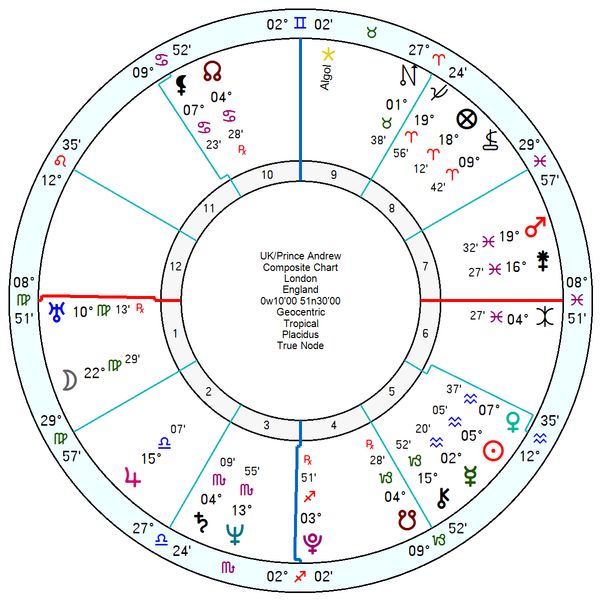 Andrew’s yod apex Uranus in Leo rattles off two of the UK’s financial planets – Neptune in the financial 2nd and Venus in the speculative and playboy 5th. His Pisces Sun falls close to the UK Pluto which is approaching a turbulent tr Uranus square from this June onwards. So his fate may be intertwined with, or a catalyst for, the upheaval that will be coming.