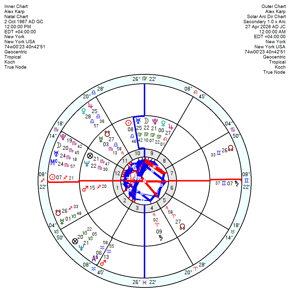 Karp, 2 October 1967 New York, has a Libra Sun opposition Saturn in Aries with the innovative Uranus Pluto (Moon) conjunction in Virgo square Mars – again super-determined and ruthless. Plus a flamboyant Jupiter in Leo in a high-finance, over-optimistic square to Neptune. The ground will turn swampy under his feet from 2028 onwards with tr Neptune conjunct his Saturn and opposition his Sun with a devastating/confused 2029 as his SA Pluto is conjunct his Neptune.