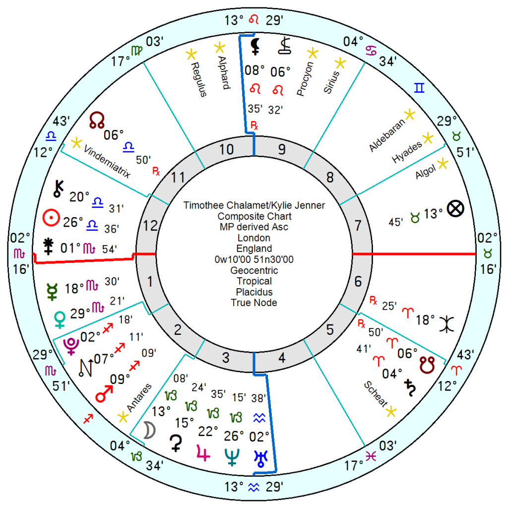 Saturn Neptune moving through his 8th in the coming years (Saturn two and Neptune many) will also throw him back on himself so he may feel under supported and uncommitted. In 2026 tr Neptune will make an undermining square to his Sun from June 2026 onwards and throughout 2027 at the same time as it is conjunct the composite Saturn in his relationship chart with Kylie which will give rise to uncertainty. Tr Uranus will also oppose his Pluto and Kylie’s in 2026 for a fair few upheavals.