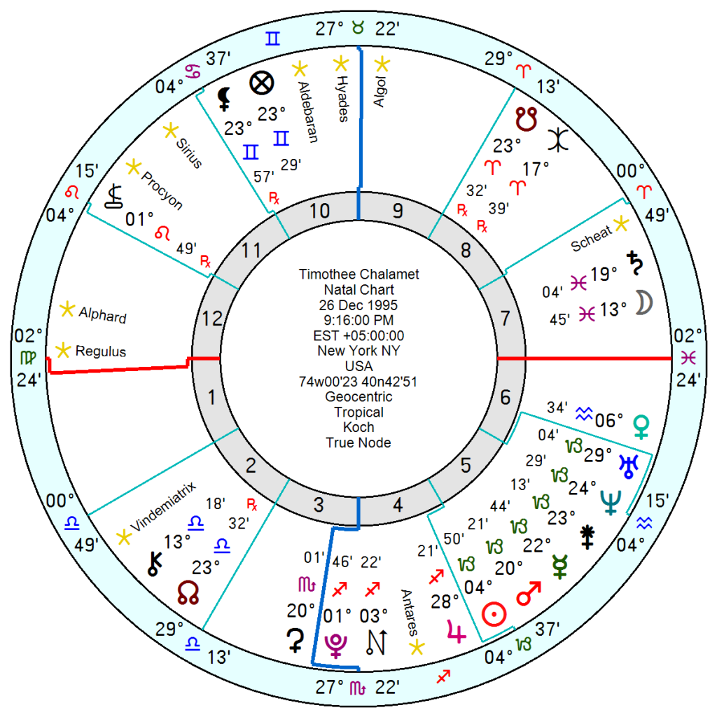 Agree Robert. He was extraordinary as Dylan. Chalamet’s ability to channel the young musician may well be reflected in his Mercury/Neptune in the 5th which has the ability to disappear behind a character or role and often has a natural talent for mimicry. He has Dylan’s wirey physique too.