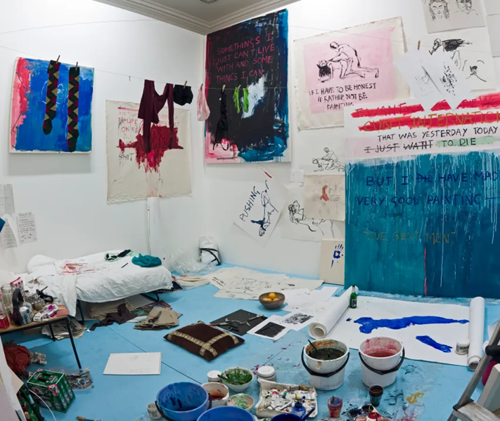 Her initial foray into conceptual art was taken initially as promiscuous boasting but was ultimately seen as a self-portrait of depression, following childhood neglect, abuse, rape at 13, and suicidal thoughts after a recent break-up.