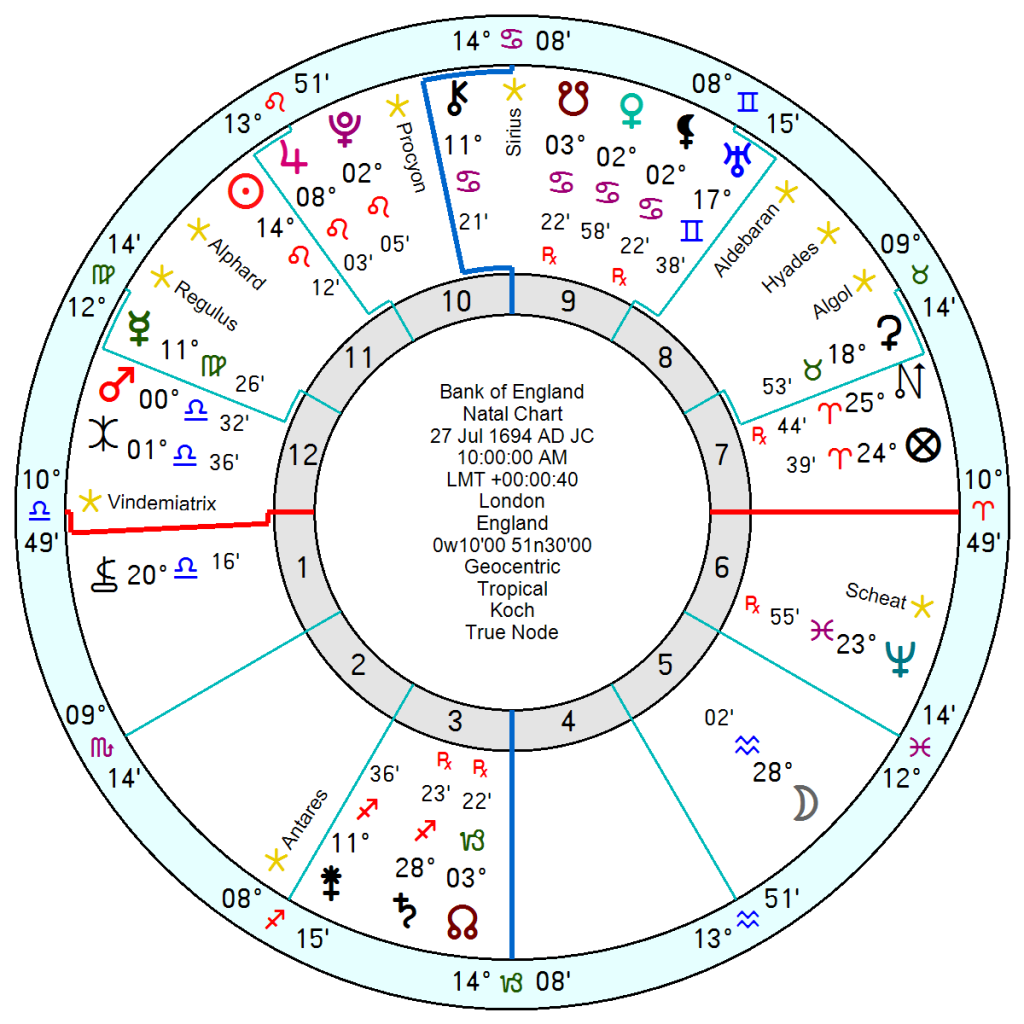 The Bank of England, 27 July 1694 10am JC, like the US has tr Saturn Neptune square the Venus and in the BoE’s case Mars as well through 2026 making for an apprehensive and jittery year on the financial front through there will be a robust response from tr Pluto opposition the Jupiter/Pluto midpoint from ,late March 2026 onwards and through 2027 which could produce results.