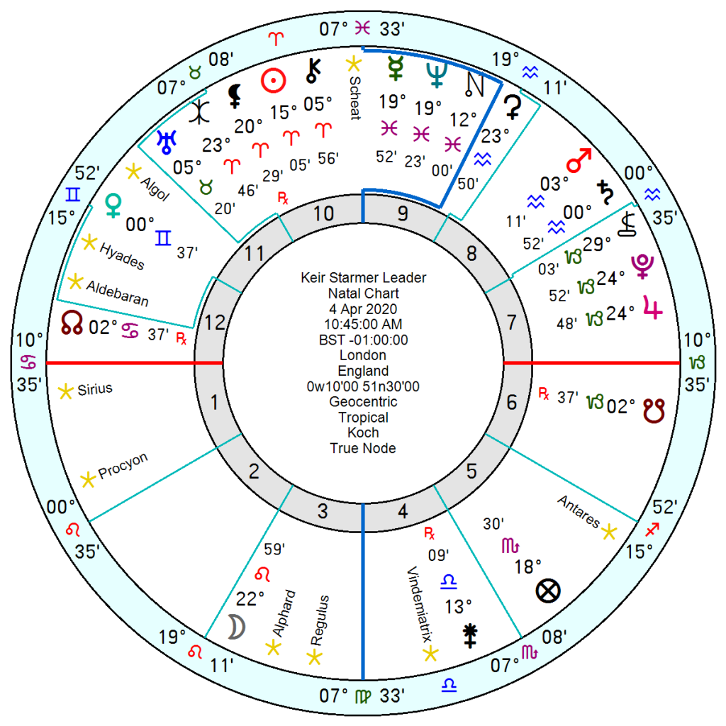 With regard to the current Labour government its natal election chart and the 17 July 2024 State Opening Parliament chart in 2024 are fraught with problems not least the presence of Neptune, Uranus and Mars close to malefic stars Scheat and Algol.